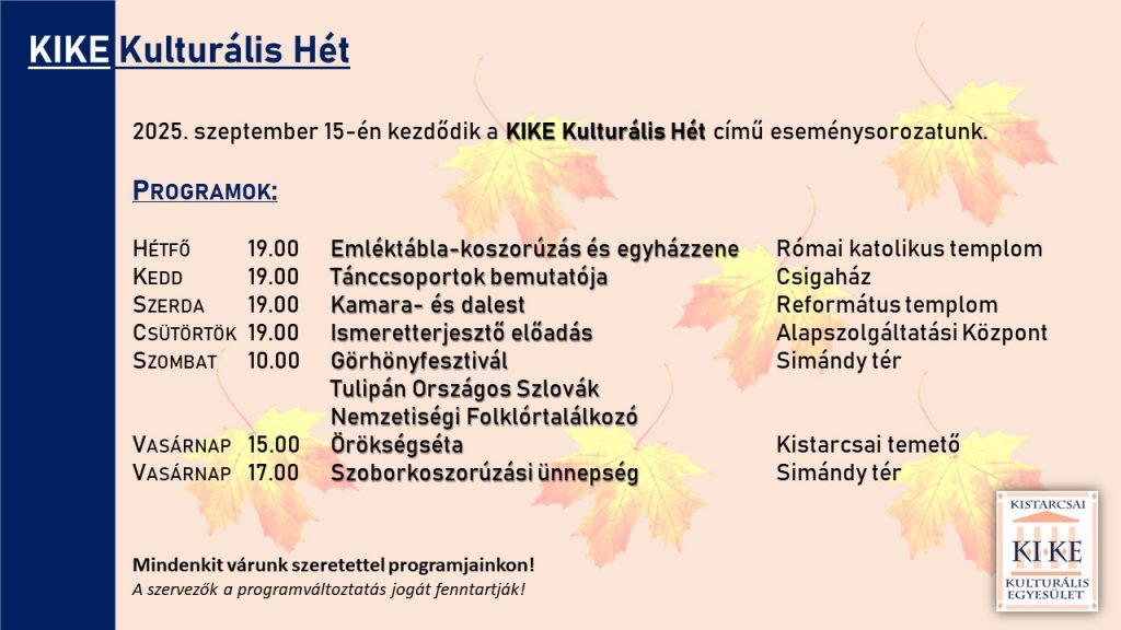 2. Kistarcsai Kulturális Egyesület, kike@kike.hu